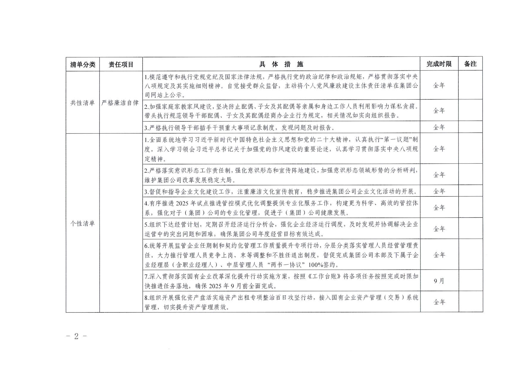 南寧交投集團領(lǐng)導(dǎo)班子其他成員2025年度黨風(fēng)廉政建設(shè)“一崗雙責(zé)”清單(二)