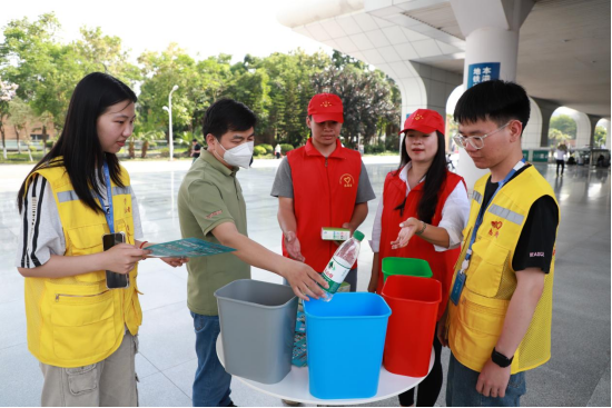 5月13日,南寧礦業(yè)集團(tuán)聯(lián)合康城汽車集團(tuán)在南寧東站開展“垃圾分類齊參與 四色分類記心間”志愿服務(wù)活動,將綠色文明課堂搬進(jìn)交通樞紐,通過沉浸式互動體驗讓垃圾分類知識“活起來”。